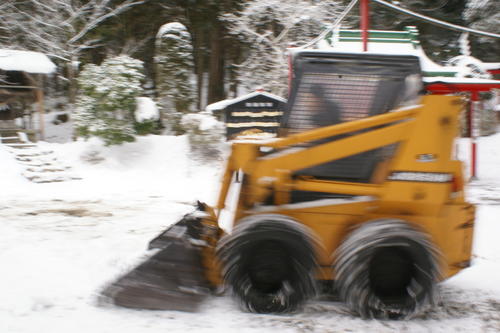 今更ながら除雪の日々が続きます。屋根の雪があちらこちらから落ち始めている為、参拝者が来る前に除雪を開始!鎌田隊長が猛スピードでローダーを操っております。