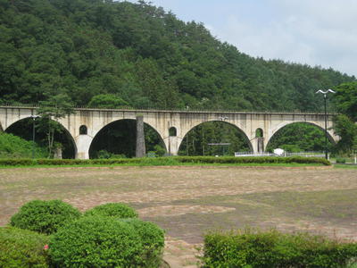本日の稲荷山上空は雲に覆われ、爽やかな青空も時折顔を覗かせる程度。それでも風も吹かず穏やかな表情を見せております。先日から全国各地で猛威を振るう「ゲリラ豪雨」。これにより各地に甚大な被害が出ており、未だに終息の気配を見せておりません。昨日は7月と言うのに「雹(ひょう)」も観測され、農作物に被害をもたらしました。自然の力。この天候も我々への警鐘とも考えられます。自然を生かし、その恵みに感謝する。環境問題が叫ばれる中、もう一度我々人間が成すべき事を真剣に考えなければなりません。さて、先日まではこちらにお伺いさせて頂きました。「水分地区神社総代連合会研修旅行」でございます。本年の目的地は気仙沼市唐桑半島。先ずは唐桑半島に鎮座されております「御崎神社」様に正式参拝。御崎とは唐桑半島の最奥にある岬でございます。心静まる太鼓の音色の中、無事に参拝させて頂きました。御崎神社様は約1000年の歴史を数え、御崎の遊歩道の入口にて壮麗な社殿を参拝することが出来ます。御祭神は日本武尊・素盞鳴命・大海津見神の三神を祀っており、御崎明神と呼ばれ縁結び・大漁祈願の御利益から厚い信仰を受けられております。また、例祭は1月14・15日で、14日の宵祭り(どんと祭)から15日の午前まで続き多くの神楽や虎舞、七福神舞が奉納されるとの事。夜店では郷土民芸品の「風車」「はじき猿」「さっぱ舟」等の頒布も行われ華やかな雰囲気に包まれるそうです。正式参拝終了後はこちらへ…「気仙沼プラザホテル」様で昼食。新鮮なお刺身に地酒にと全員が大満足でございます。その後は、写真のエレベータを下り、こちらでお買い物。「お魚いちば」様でございます。新鮮なお魚に乾物。様々なお土産が所狭しと並んでおります。その場で新鮮なまま調理をして下さるお食事所もございますので、お近くにお寄りの際には立ち寄ってみては如何でしょうか。気仙沼市に向かう前にちょっと休憩。遠野市宮守町下宮守にある「宮守川橋梁」です。通称「めがね橋」と呼ばれ、国道283号と宮守川に掛けられた、釜石線の鉄道用アーチ橋です。宮沢賢治の童話『銀河鉄道の夜』のモチーフにもなったもので、2002年には土木学会選奨土木遺産に選定されているそうです。