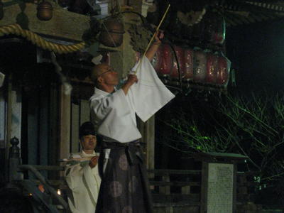 久し振りの更新となってしまいました…この稲荷日誌を楽しみにされている皆様にはご心配をお掛け致し、心よりお詫び申し上げます。一日一日秋が深まる中、本日から気持ちも新たに稲荷山の日々をお伝えして参りますので、何卒変わらぬ御声援の程宜しくお願い致します。さて、トップページのお知らせでも御存知かと思いますが、昨日の26日。当神社社殿前にて「第4回観月の夕べ」を無事斎行することが出来ました。ロウソクの灯りが境内を神秘的な雰囲気に包み込みます。強風が心配されましたが、御参拝の皆様から「綺麗ですね」との声をお掛け頂き、職員一同一安心です。社殿前には篝火。急に寒さが増してきた9月末。篝火の浄火が秋風吹き抜ける境内を温めてくれました。今回は成狐さんの素謡「鶴亀」を始め、雅楽「胡飲酒」「武徳楽」、神楽「朝日舞」「剣」を奉納し、最後は雅楽三管で「ふるさと」奏上致しました。また、演目の中で成狐さんが「五本の矢」を放ちました。この矢を持ち帰ると家運隆昌、五穀豊穣、家業繁栄に御利益が有ると言われております。そして、遂に登場。ポスターにも掲載されている鎌隊長の龍笛姿。寒さで手が悴んでいるにも関わらず、最後まで無事に演奏されておりました。御参集の皆様の中にはふるさとの音色に合わせ歌詞を口ずさんで頂く姿もお見受け致しました。本当に当日は寒さ厳しい中、多くの皆様に御参集を賜り、お陰様で無事盛大且つ厳粛に斎行することが出来ました。職員一同心より篤く御礼申し上げます。今後もより一層研鑽を積み盛大に開催致しますので、来年も多くの皆様の御参集を心よりお待ちしております。最後に…観月の夕べより牛さんが大好きなジミーさんでございます。
