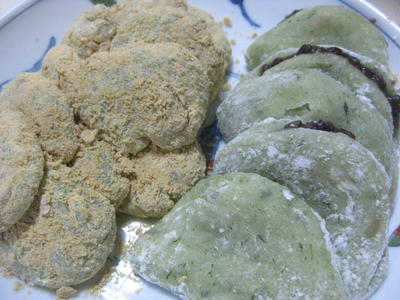 お手製の「よもぎ餅」でございます。あんこときなこの2種類。とても柔らかく、懐かしい香りと風味を職員一同で堪能させて頂きました。こちらのヨモギは稲荷山奥の山王海産。今注目されている「地産地消」の一品とも言えます。