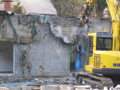 緩やかに時の流れる稲荷山。稲荷の大銀杏も半分以上の葉が散り、昨日より黄色い絨毯が厚みを増しておりました。そんな中、社殿正面のモミジは散ってしまったのですが、こちらはこれからどんな色を見せてくれるのでしょう。参道左側のモミジ。まだまだ綺麗な紅葉を見せてくれております。境内の中でも散る時期はその木、場所によって異なるようです。終盤とは言え、まだまだ輝く稲荷の紅葉。御参拝の際は菊花展と共にこちらも御堪能頂ければ幸いです。そんな紅葉の下で…「イナゴさん」を発見。御家族で元気に飛び回り、紅葉を楽しんでおられました。本日は「立冬」。「冬の気が初めて立つ頃」でございます。朝晩は寒さも厳しくなり、日に日に冬が近付いていることを実感致します。その寒さにも負けず…夏のなごりが残っておりました。どんな雨にも風にも負けず、しっかりとしがみついております。あの暑い季節ももう忘れ去られようとしている今日この頃。この寒さに、すこし夏が恋しくなるのは気のせいでしょうか。さて、境内は穏やかですが、こちらは打って変わって賑やかに作業が続いております。一棟目の解体工事が終盤に差し掛かり、最後の建物の解体に取り掛かっております。大型の重機により一気に取り壊し。その脇では細かい分別作業を作業員さんが行っております。力強さと繊細さ、その両方がなければ解体作業は進みません。今後共、寒さ厳しい中ですが安全第一に御尽力を賜りますようお願い申し上げます。