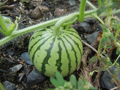 8月も残すところ3日となりました。3日後はもう9月。季節は秋でございます。しかし、未だ日中の暑さは変わることなく30度を超え汗が止まることない稲荷山。セミ達も元気一杯に声を響かせ、夏が過ぎるのを引き留めているかのようです。それでも午後4時を過ぎると…空も秋めいて、吹く風も秋の香りを纏っております。天も高くなり、雲も気持ち良さそうです。空の色合いも段々と優しさを増し、その柔らかな表情が秋が近付いていることを静かに教えてくれております。さて、少し暑さの和らいだ頃を見計らって境内巡回へ…こちらは稲荷山稲明殿前の駐車場。この駐車場の左奥でございますが、いつもは…戸川職員さんが一生懸命草刈りに励まれているのですが、そんな戸川職員さんでも刈り払えない草々が現れたとのことで、本日撮影に向かわせて頂きました。先ず目にしたのは…何と「スイカ」でございます。ここは畑でもなく、いつもと変わらない駐車場脇。「なぜこんな所に?」と思っていたら隣には…「ミニトマト」でございます。しっかりと黄色い花を咲かせ、元気に成長中。いつの間にかこの駐車場脇は自然の農園になっていたようです。これらの種は鳥達が運んできたのでしょうか?種がなければ草も木もその芽を出すことはありません。いつ?なぜ?と不思議は募るばかりですが、そんな偶然も自然の魅力でございます。土壌自体の栄養が心配ですが、今後の生育は戸川職員さんにお任せとのこと。少しでも大きくなるのか今後の成長が楽しみです。