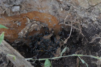 今日気付いたのですが、またもや境内に熊さんが出没した痕跡を発見致しました。黒スズメ蜂の幼虫を食したようです。肉食のスズメ蜂も幼虫を求めて5・6匹飛んでました。社殿東側は、何年も草刈り作業をしておりませんでしたが、熊の通り道のようですので、発見しやすくする為にも、草を刈らねばならないようです。