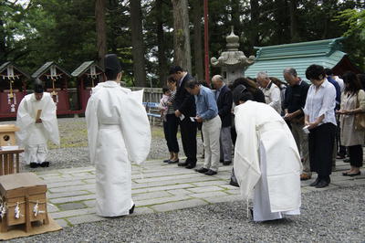 心配された雨に降られることもなく夏越大祓神事滞りなくご奉仕致しました。通信祈祷にて申し込みされました皆様方の人形も合わせてお清めさせて頂きました。茅の輪並びに神符は、明日発送致しますので、今週中には御自宅に届くかと思います。明日から下半期になります。皆様も暑さに負けず健康でお過ごしになられますことご祈念申し上げます。