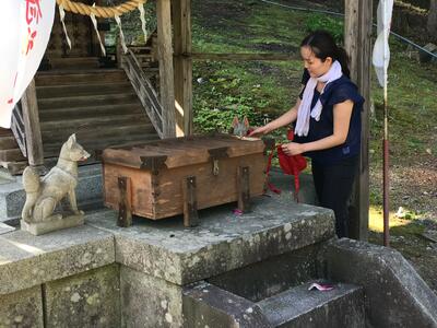新緑が目に映え水田に稲穂が輝く時期となって参りました。 先月末より末社の眷属様に前掛けのご奉納が数件ありましたが、どなたの奉納か見当が付きませんでしたが、ようやくご奉納者がわかりました。一昨日は「祖霊社」にご奉納賜りました。 ご夫妻の許可を得ることが出来ましたので、ご奉納された際の写真を掲載させていただきます。小笠原ご夫妻ご奉納ありがとうございました。またのご参拝をお待ちしております。